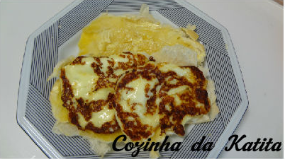 É só cortar fatias finas do queijo branco, derreter um pouquinho de margarina e colocar para fritar.